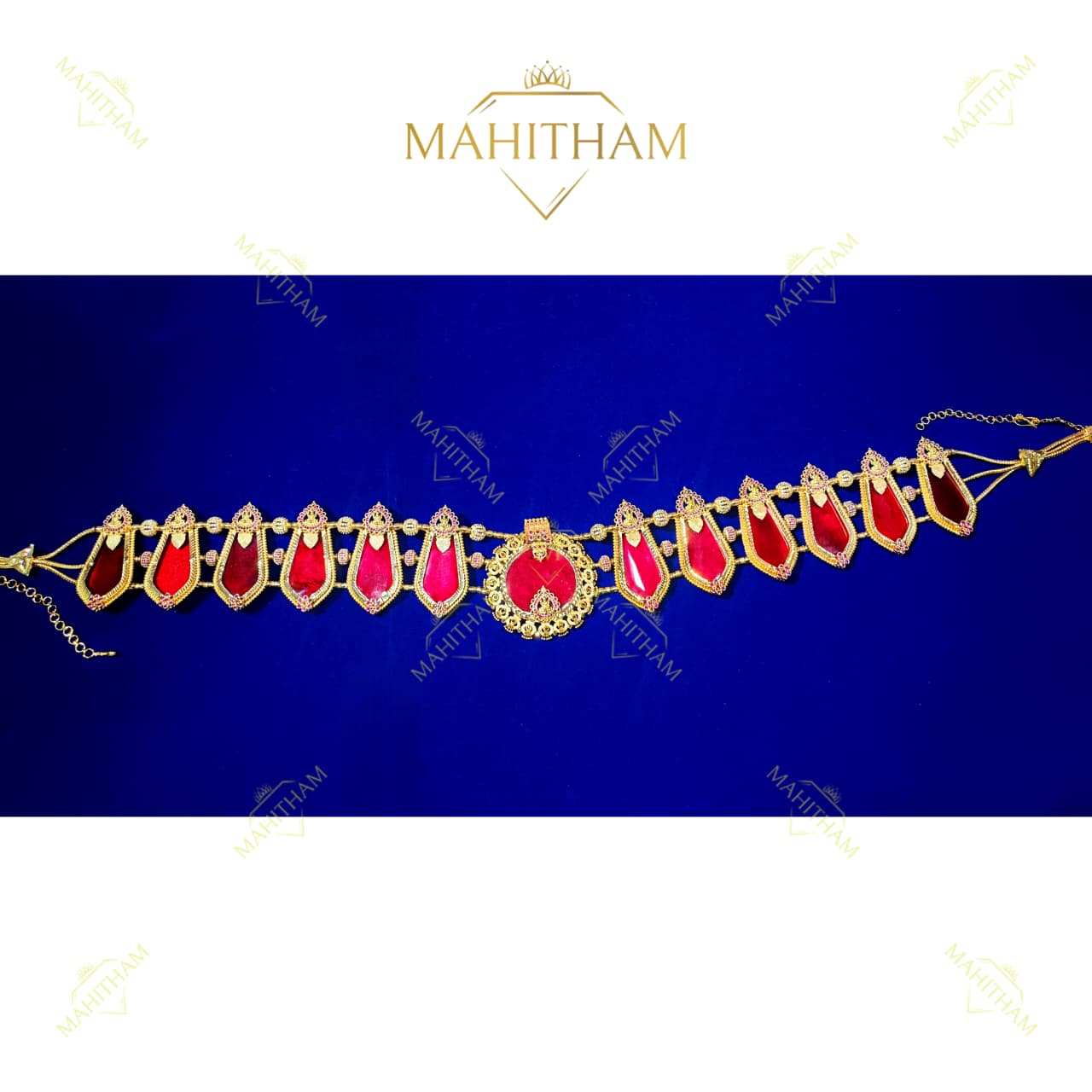 Introducing the Mahitham Red Nagapadam Hip Chain (MG-2156)—a luxurious handcrafted hip belt designed to enhance traditional dancers, Bharathanatyam, temple events, and cultural occasions.